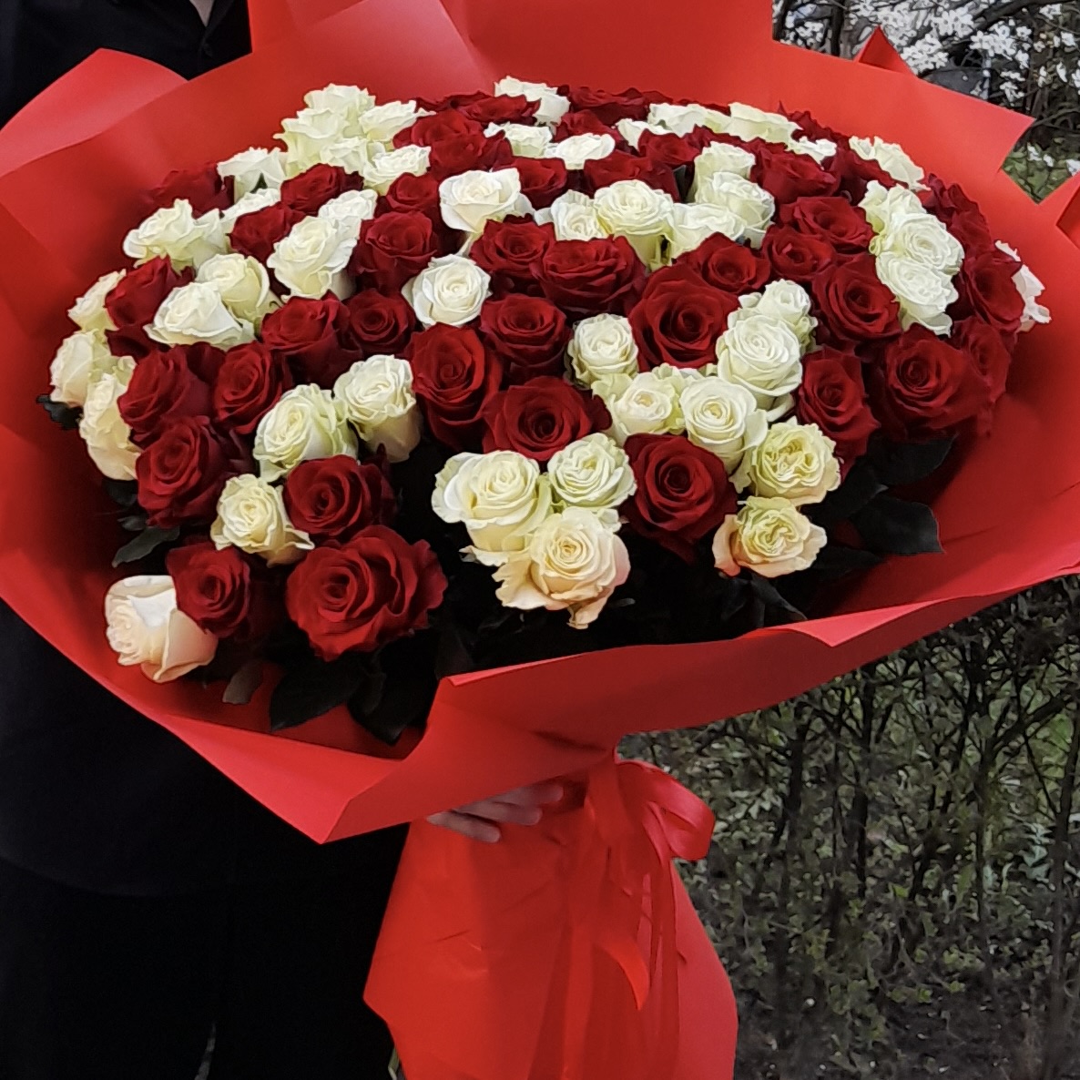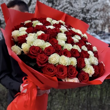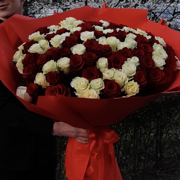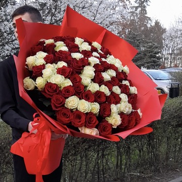 Klasyczny i pełen symboliki bukiet z białej i czerwonej róży. Połączenie czystości i miłości tworzy wyjątkową, ponadczasową kompozycję idealną na romantyczne okazje, podziękowania lub wyjątkowy gest pełen emocji. Każdy bukiet powstaje z ręcznie dobranych, świeżych róż o pięknych, trwałych pąkach.