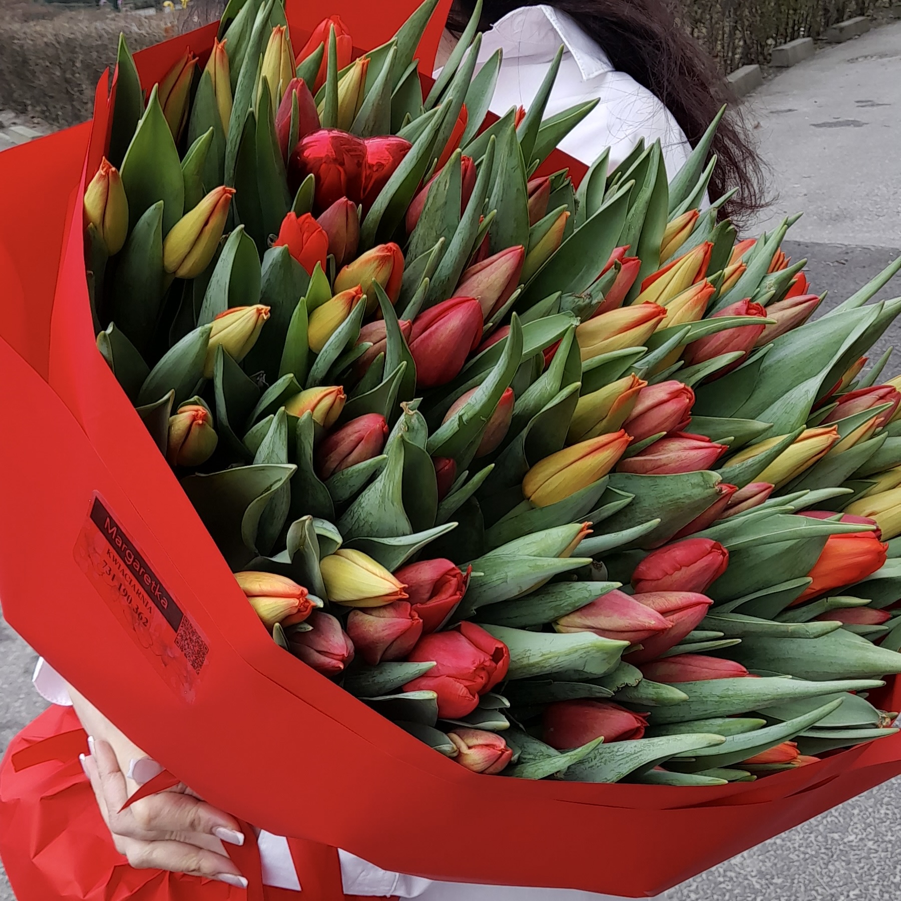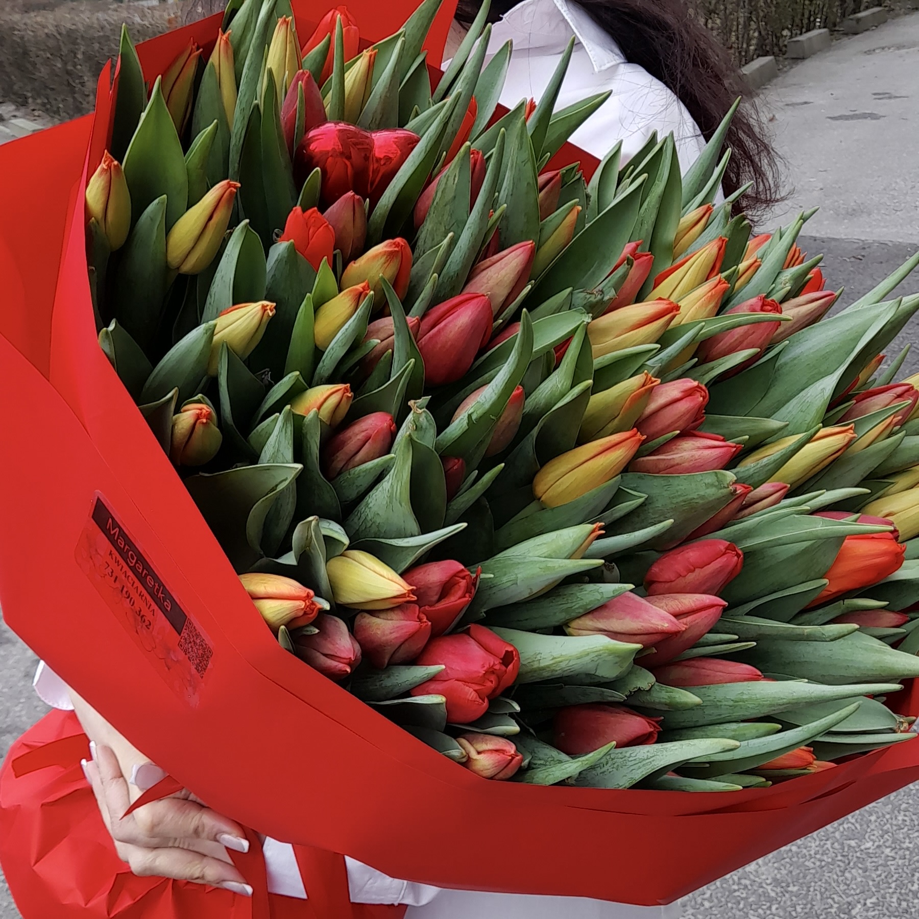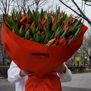 Energetyczny i pełen wyrazu mix czerwonych i pomarańczowych tulipanów. Intensywne kolory tworzą żywą, radosną kompozycję idealną na poprawę nastroju, podziękowania lub jako wiosenny akcent w wyjątkowym dniu. Każdy bukiet układamy ręcznie z świeżych, starannie dobranych tulipanów.